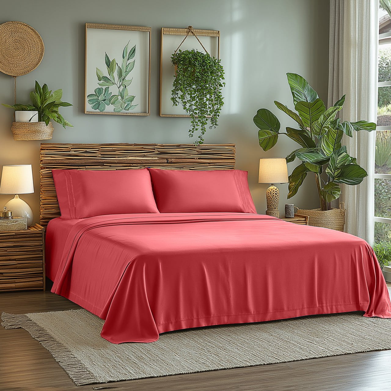Smyrna Luxury 4 Piece Bed Sheet Set King 1800 Thread Count Coral
