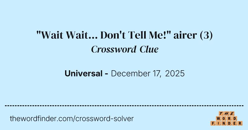 quot Wait Wait Don #39 t Tell Me quot airer Crossword Clue