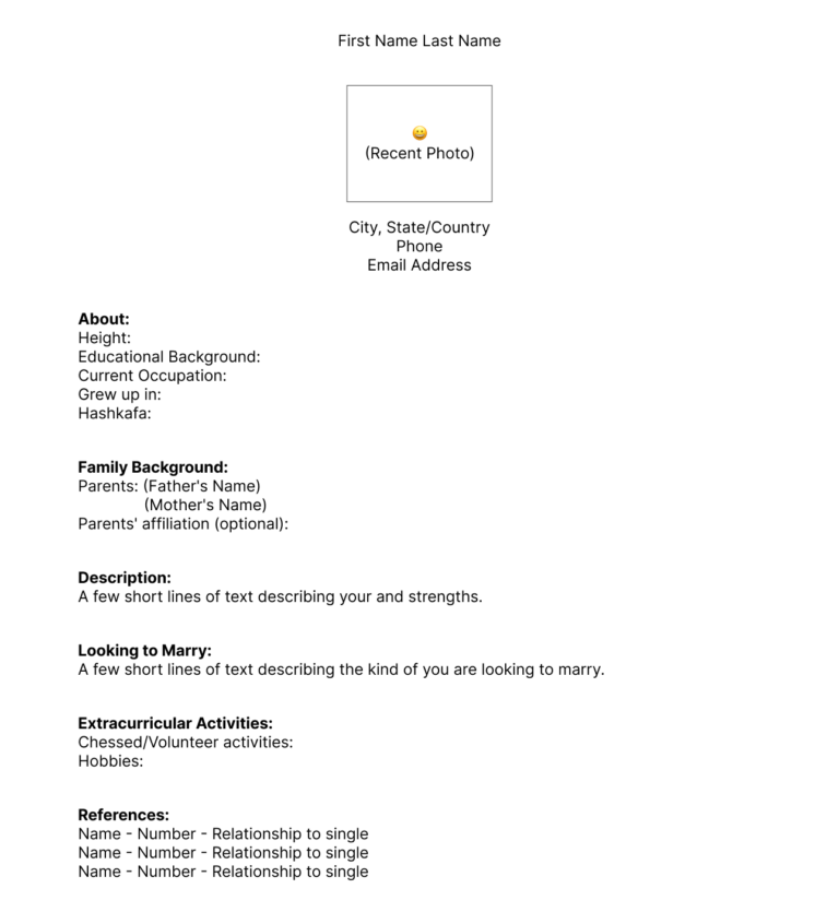 Here are some of the images for Shidduch Resume Template that we found in our website database.