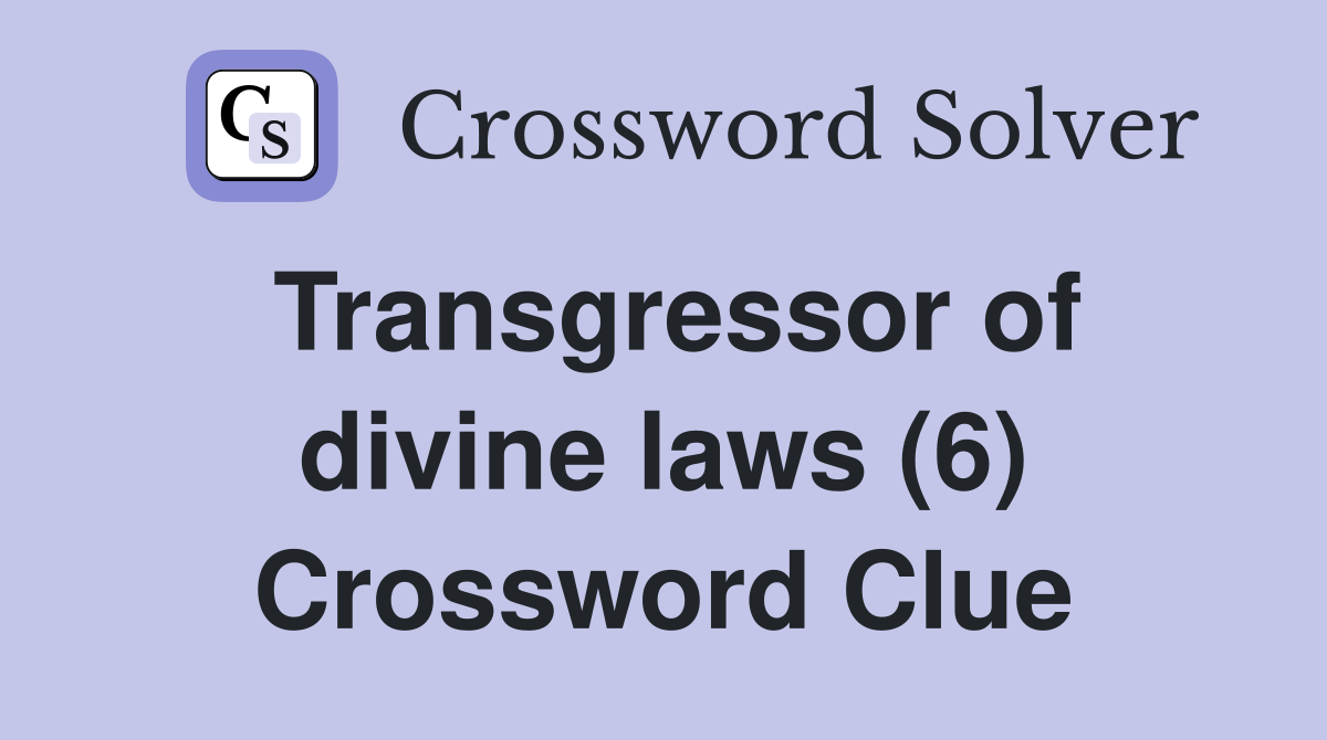 Transgressor of divine laws (6) Crossword Clue Answers Crossword Solver
