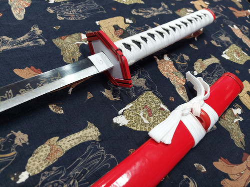 Amazon com : Red Japanese Samurai Sword T1095 high Carbon Steel Blade