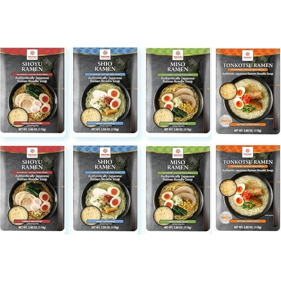 Hakubaku Authentic Japanese Ramen Noodles Variety Pack 8 Pouches Shoyu