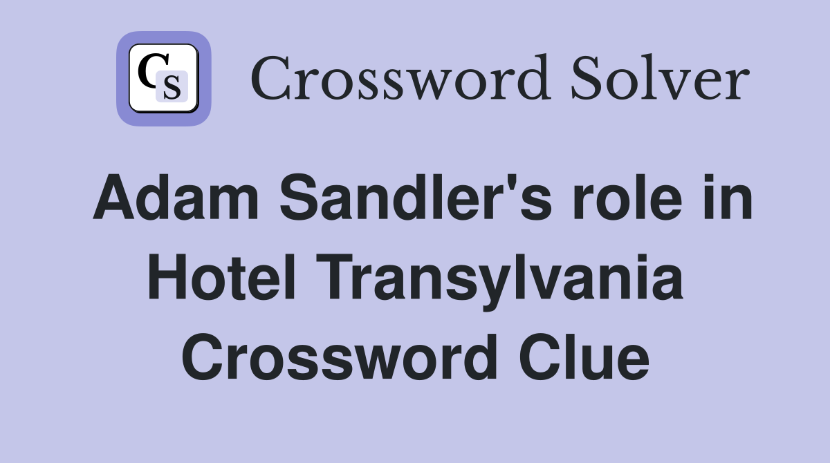 Adam Sandler s role in Hotel Transylvania Crossword Clue Answers