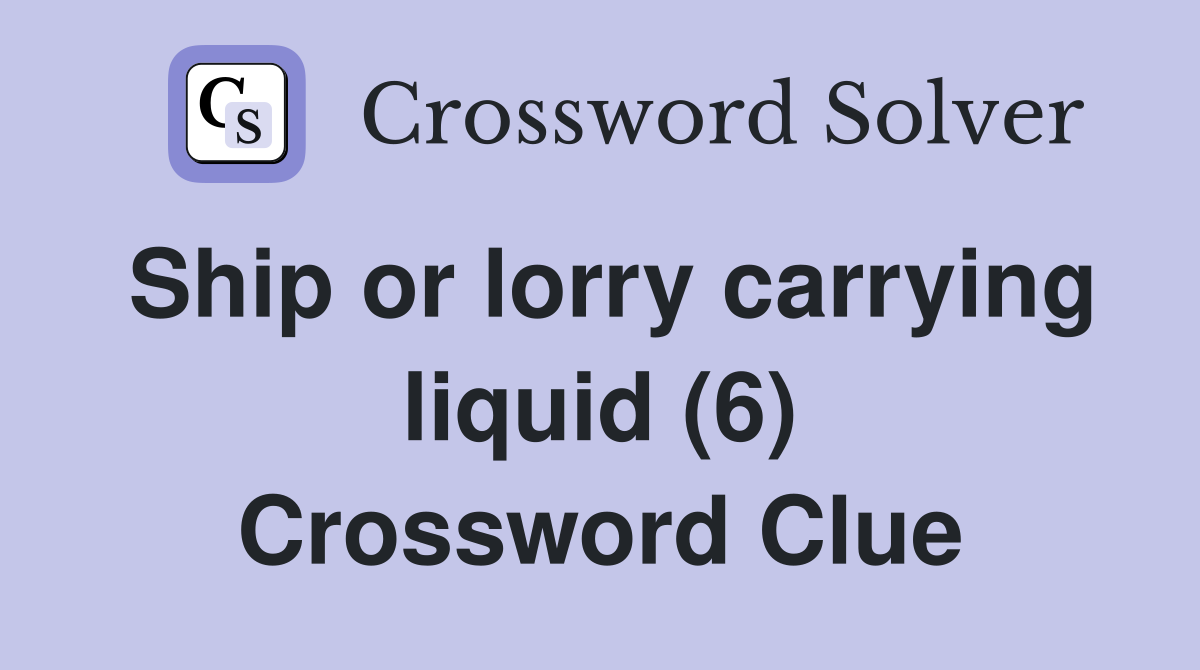 Ship or lorry carrying liquid (6) Crossword Clue Answers Crossword