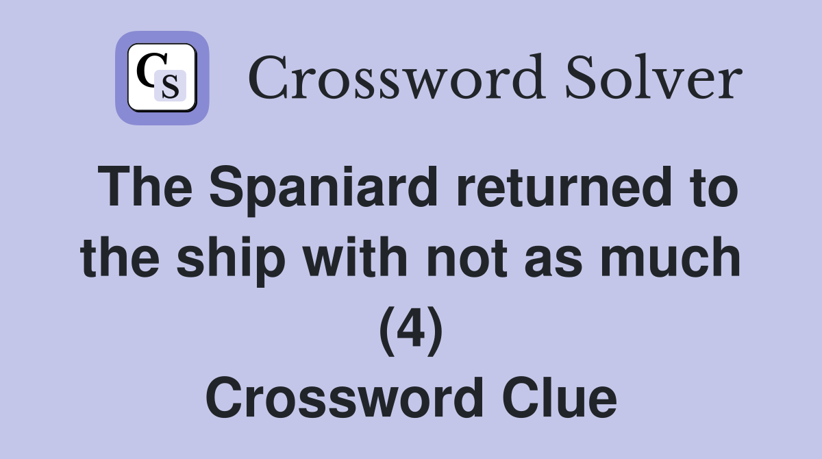 The Spaniard returned to the ship with not as much (4) Crossword Clue