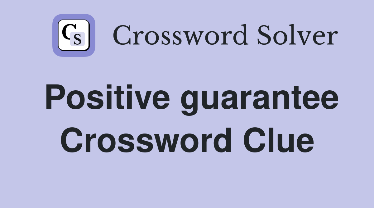 Positive guarantee Crossword Clue Answers Crossword Solver