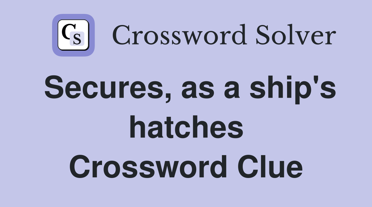 Secures as a ship s hatches Crossword Clue Answers Crossword Solver