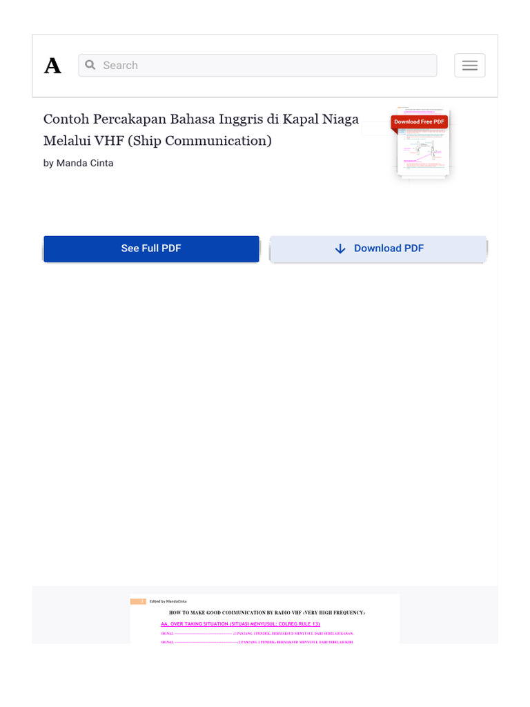 (PDF) Contoh Percakapan Bahasa Inggris Di Kapal Niaga Melalui VHF (Ship
