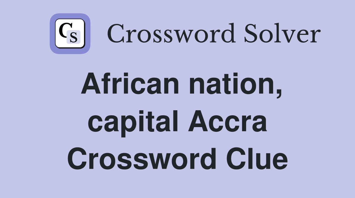 African nation capital Accra Crossword Clue Answers Crossword Solver