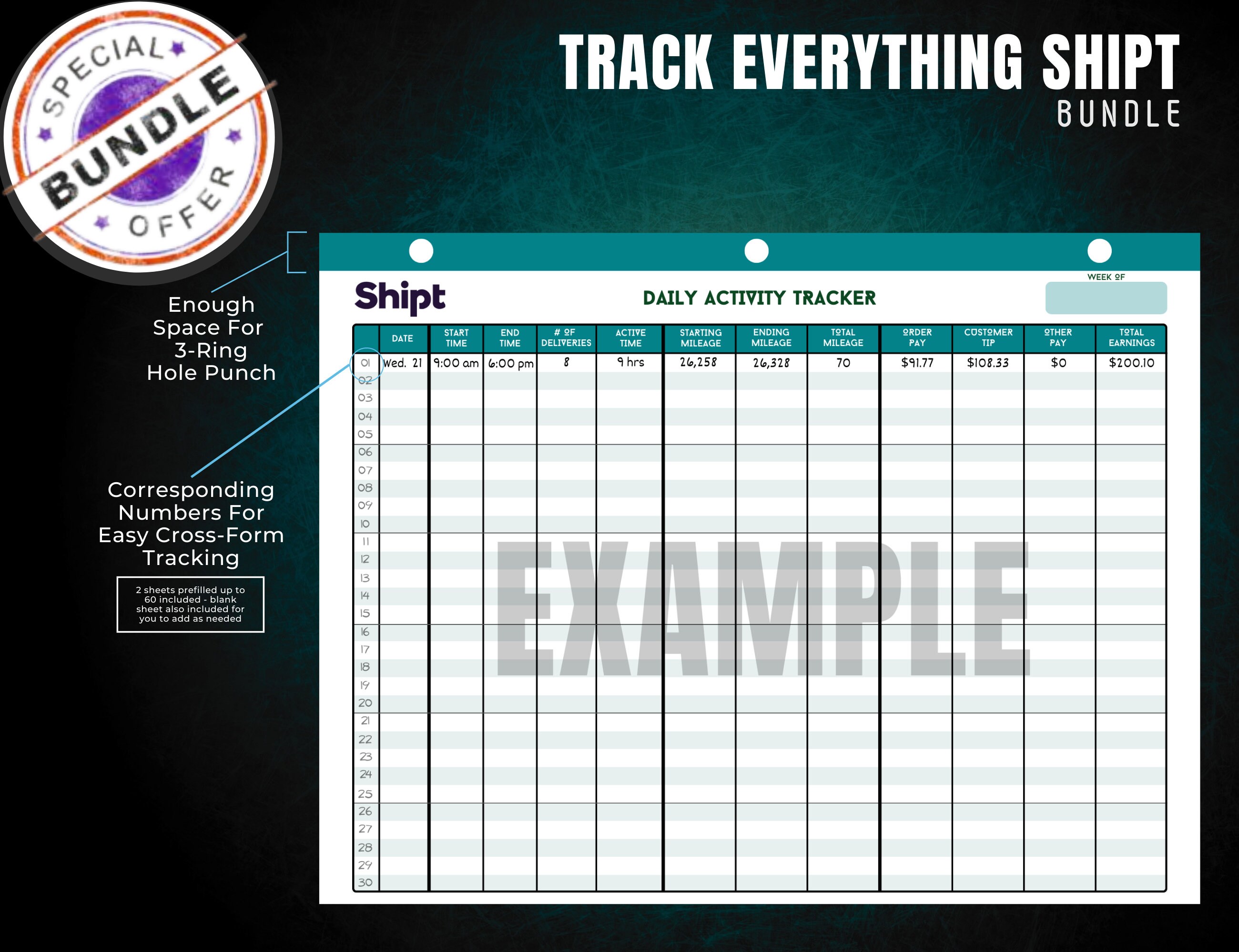 SHIPT Tracker Bundle Mileage Daily Activity Earnings Delivery