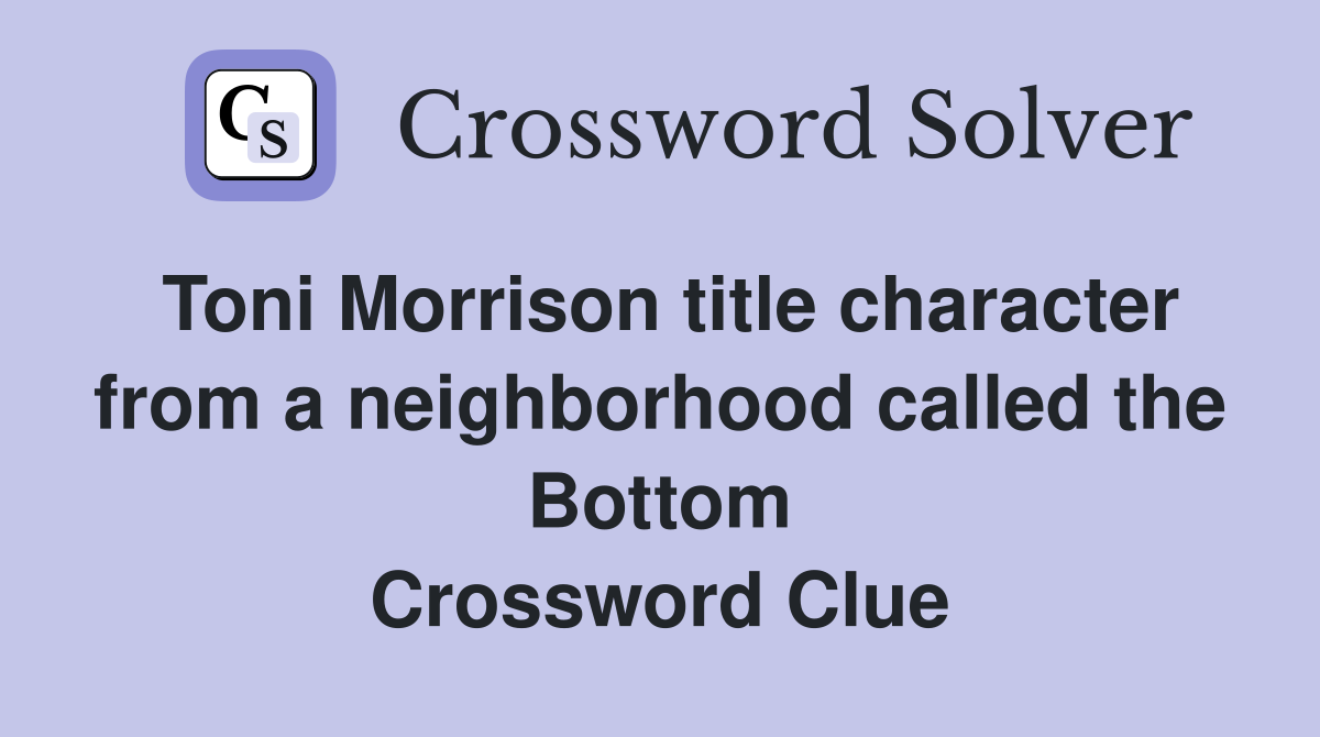 Toni Morrison title character from a neighborhood called the Bottom
