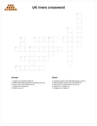UK rivers crossword Teaching Resources