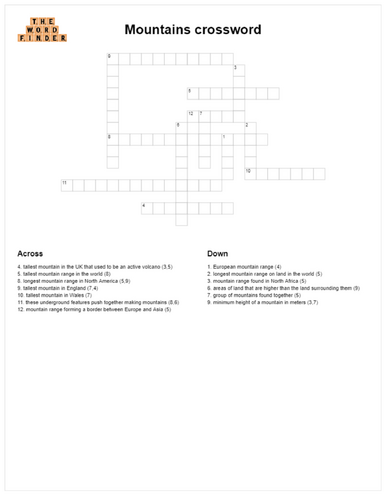 Mountains crossword Teaching Resources