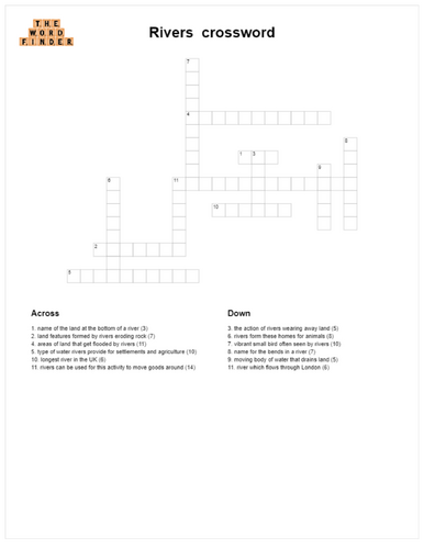 Rivers crossword Teaching Resources