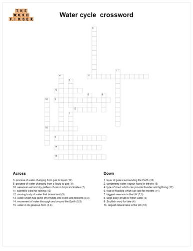 Water cycle crossword Teaching Resources