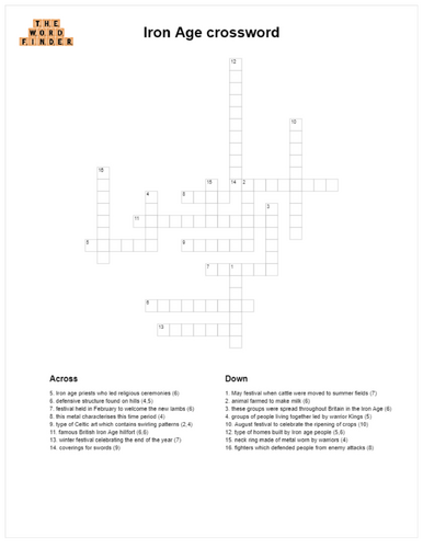 Iron Age crossword Teaching Resources