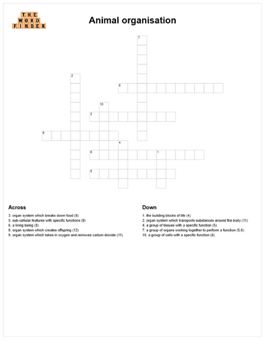 Animal organisation crossword Teaching Resources