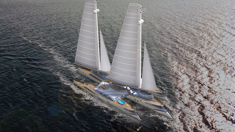 This Bonkers 328 Foot Trimaran Concept Uses Massive Tilting Sails to