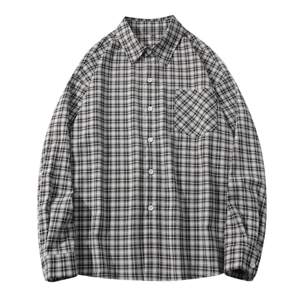 Bxsruta Shirts for Men Men #39 s Checkered Pattern Lapel Long Sleeve Shirt