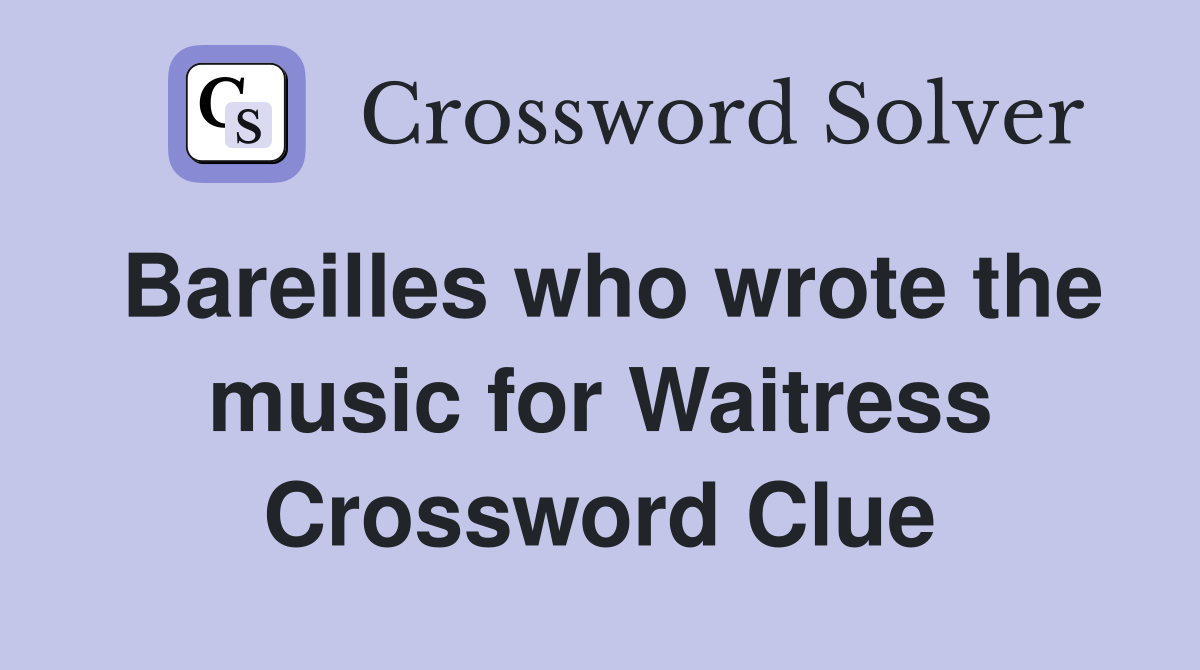 Bareilles who wrote the music for Waitress Crossword Clue Answers