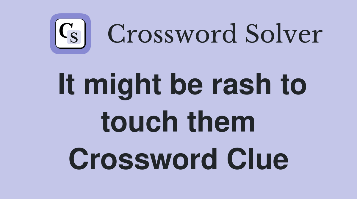 It might be rash to touch them Crossword Clue Answers Crossword Solver