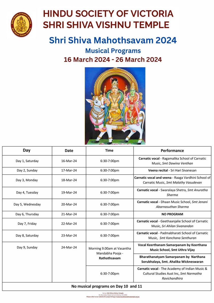 Shri Shiva Mahothsavam 16 to 26 March 2024 Shri Shiva Vishnu Temple