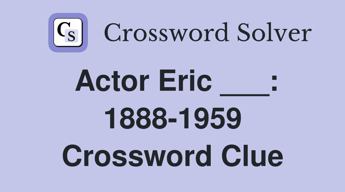 Actor Eric : 1888 1959 Crossword Clue Answers Crossword Solver