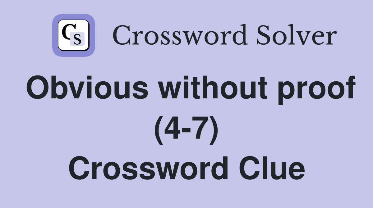 Obvious without proof (4 7) Crossword Clue Answers Crossword Solver