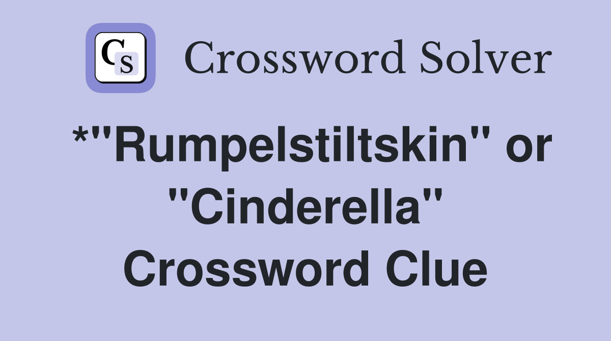 * quot Rumpelstiltskin quot or quot Cinderella quot Crossword Clue Answers Crossword