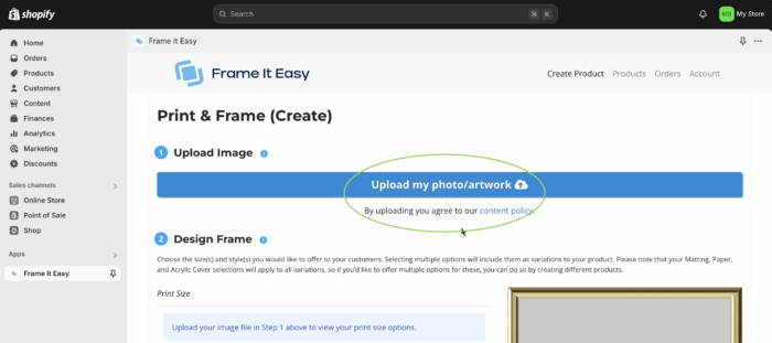 Shopify Setup For Artists Resellers: Frame It Easy App