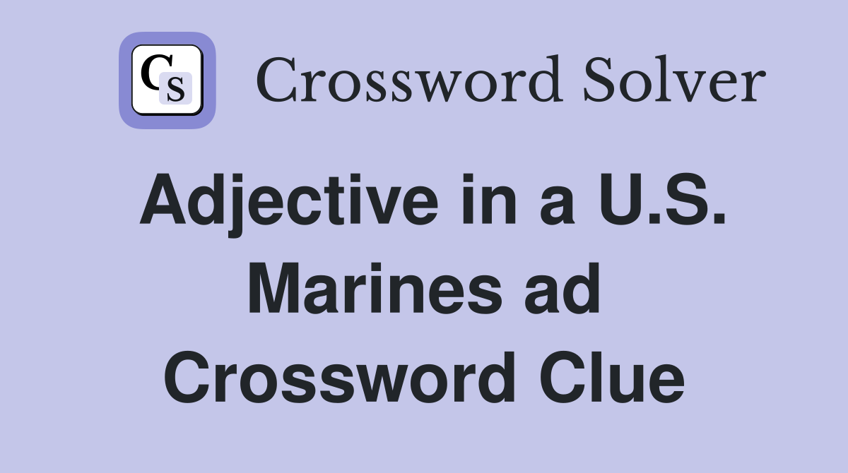 Adjective in a U S Marines ad Crossword Clue Answers Crossword Solver