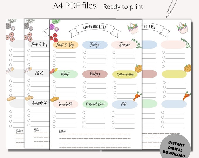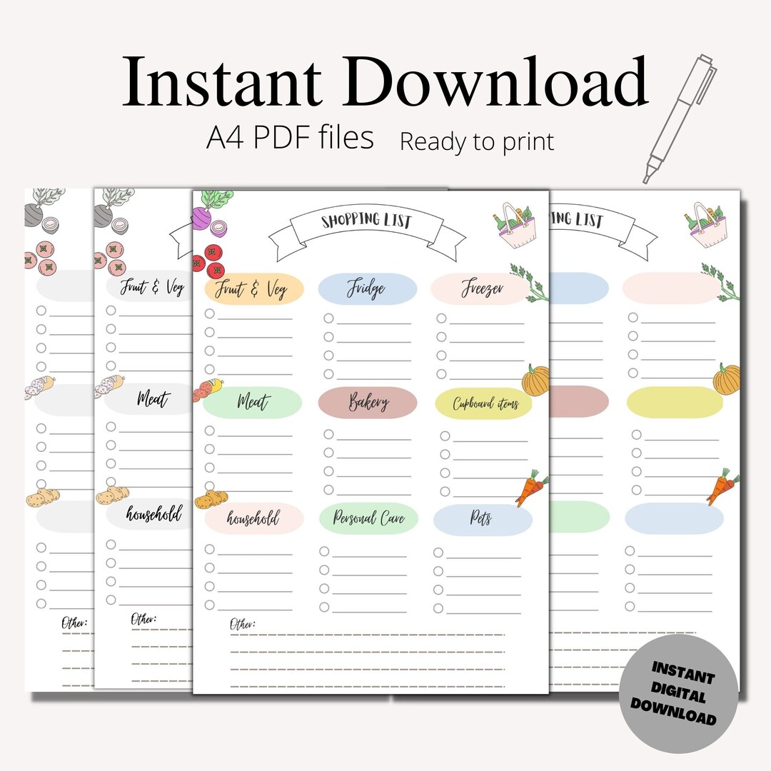 Shopping List Printable Instant Download PDF A4 and US Letter