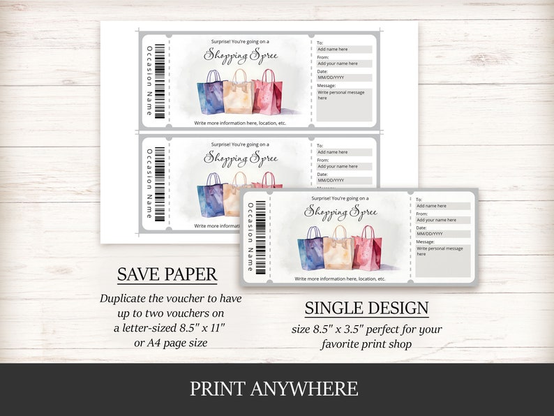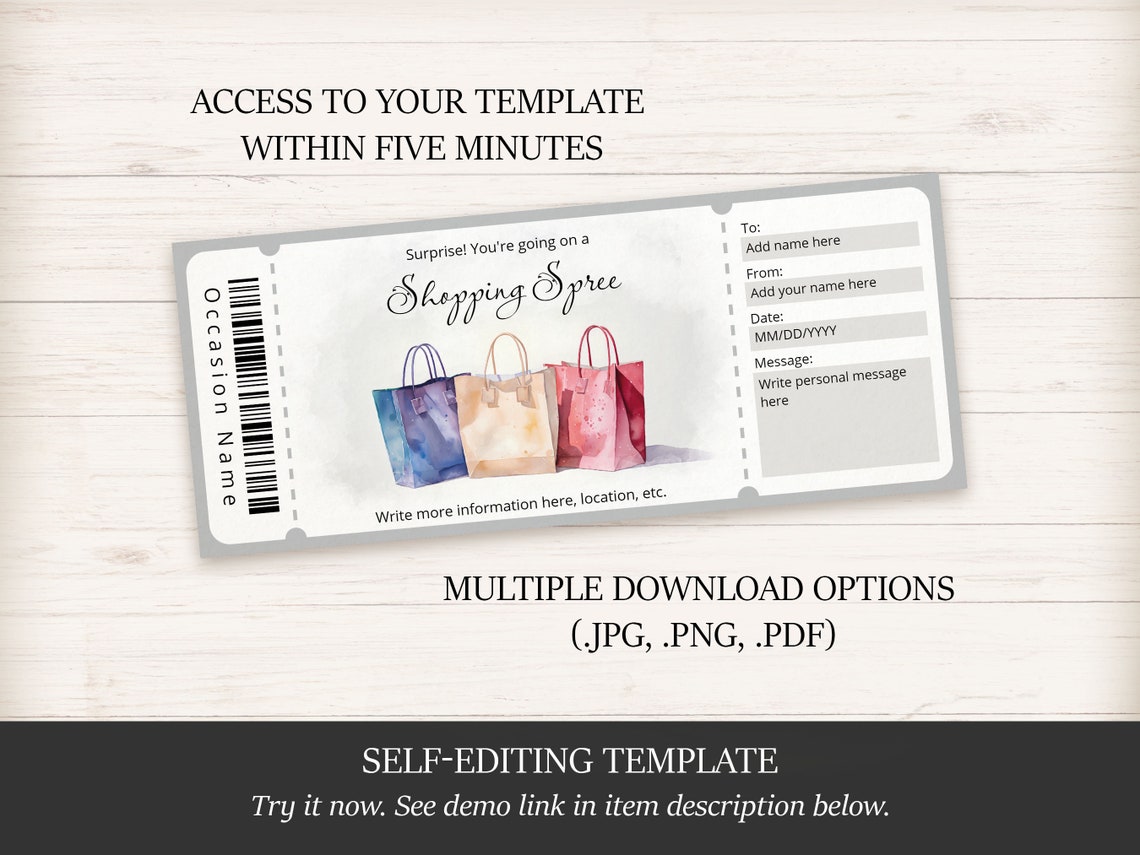 Shopping Spree Gift Certificate Editable Template Surprise Shopping