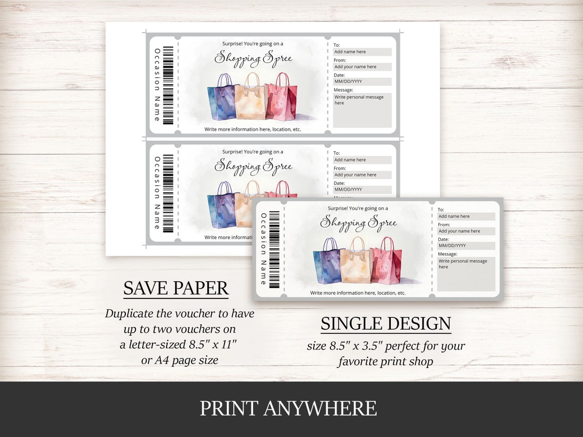 EDITABLE Shopping Spree Certificate Template Printable Gift Voucher