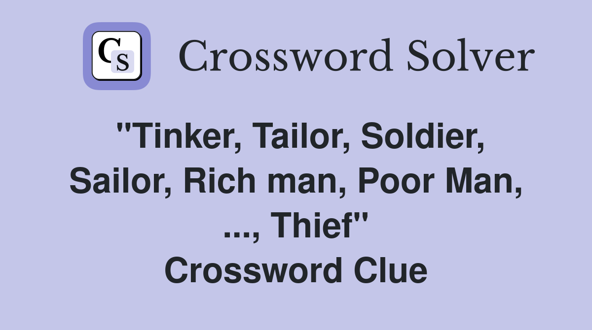 quot Tinker Tailor Soldier Sailor Rich man Poor Man Thief