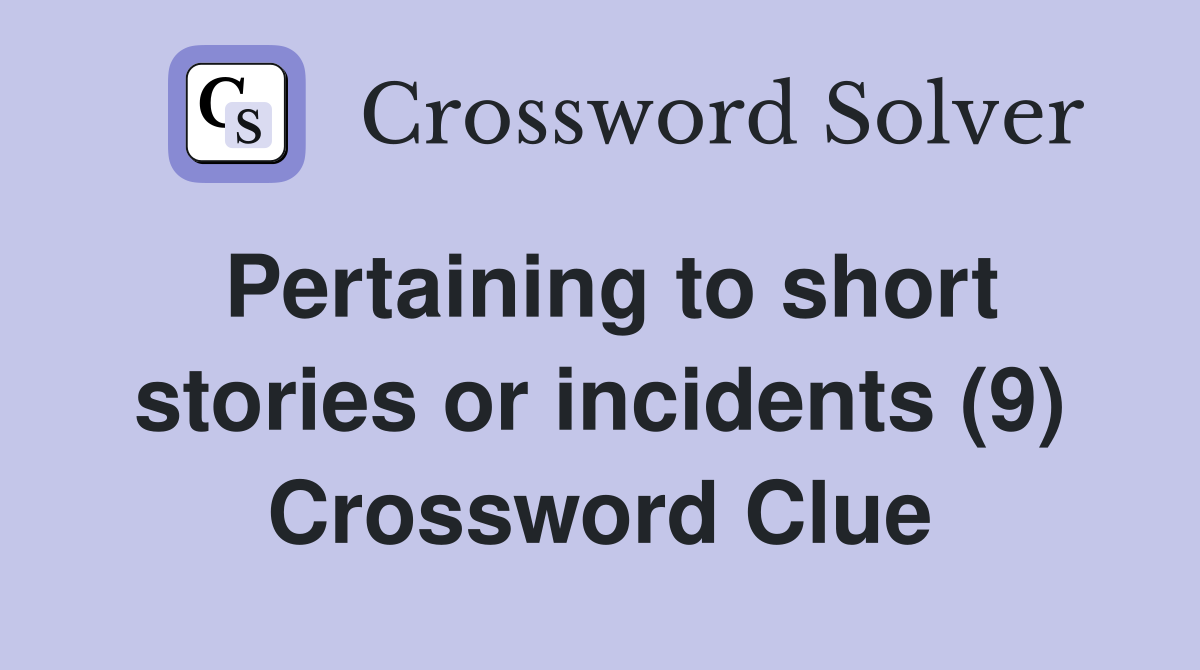 Pertaining to short stories or incidents (9) Crossword Clue Answers
