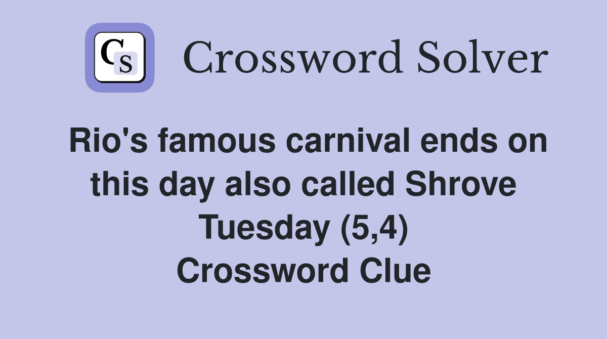 Rio #39 s famous carnival ends on this day also called Shrove Tuesday (5 4