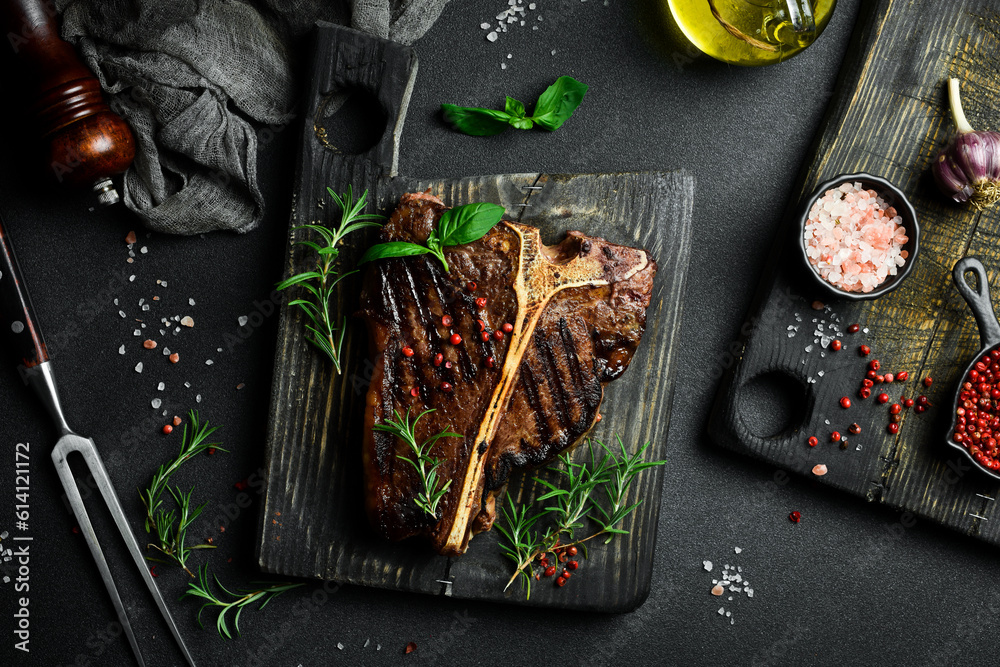 Tbone or porterhouse raw steak of beef cut from the short loin steak