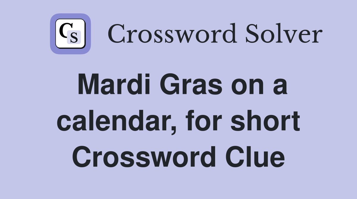 Mardi Gras on a calendar for short Crossword Clue Answers