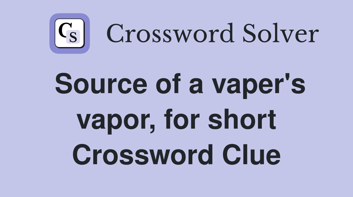 Source of a vaper #39 s vapor for short Crossword Clue Answers