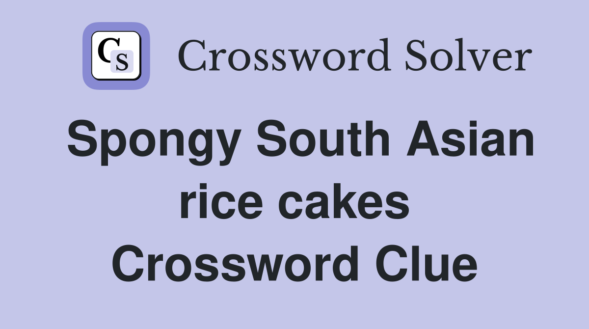 Spongy South Asian rice cakes Crossword Clue Answers Crossword Solver