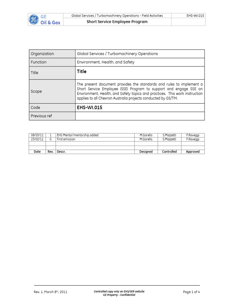 1 10 Short Service Employee Policy pdf EH S Management System Level