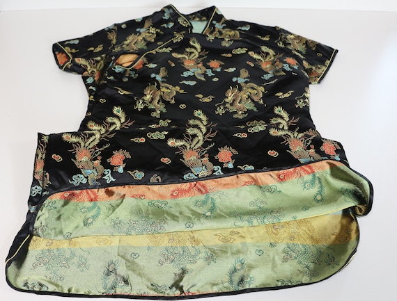 Asian Tunic Oriental Robe Black Gold Dragon Vintage A Gem