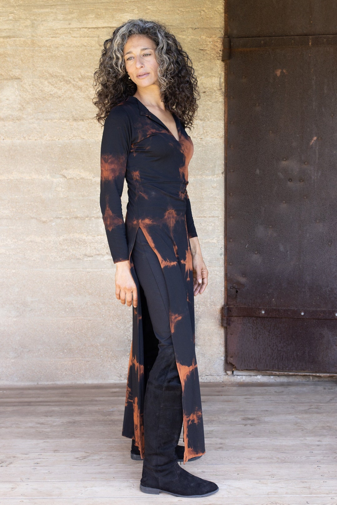 Long Tunic Dress Handmade Tie Dye Tunic Black Asian Tunic Dress