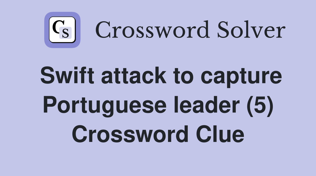 Swift attack to capture Portuguese leader (5) Crossword Clue Answers