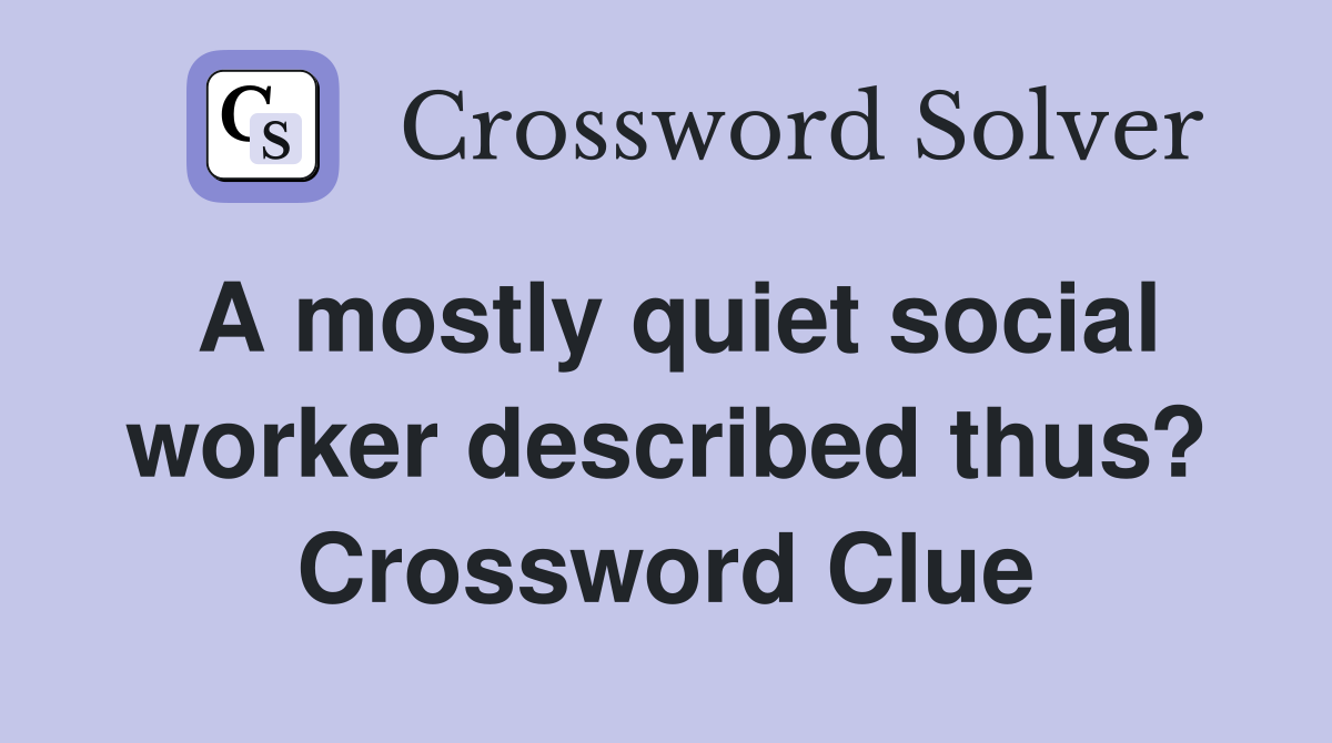 A mostly quiet social worker described thus? Crossword Clue Answers