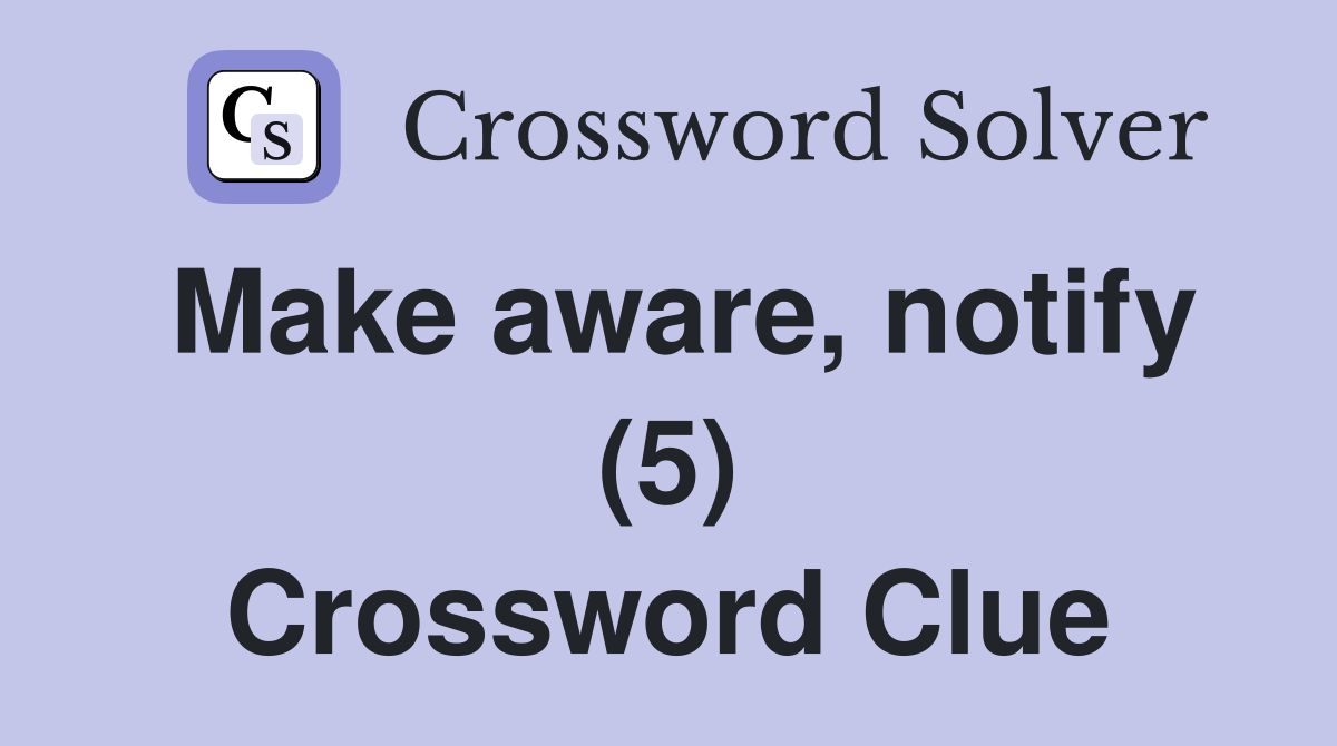 Make aware notify (5) Crossword Clue Answers Crossword Solver