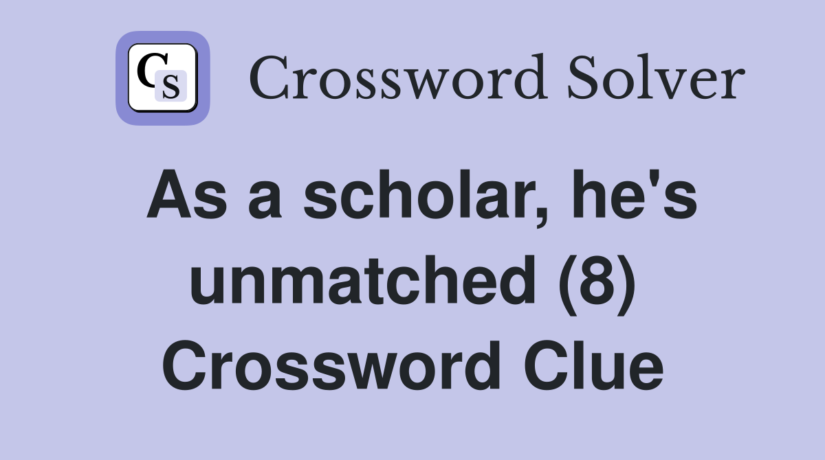 As a scholar he #39 s unmatched (8) Crossword Clue Answers Crossword