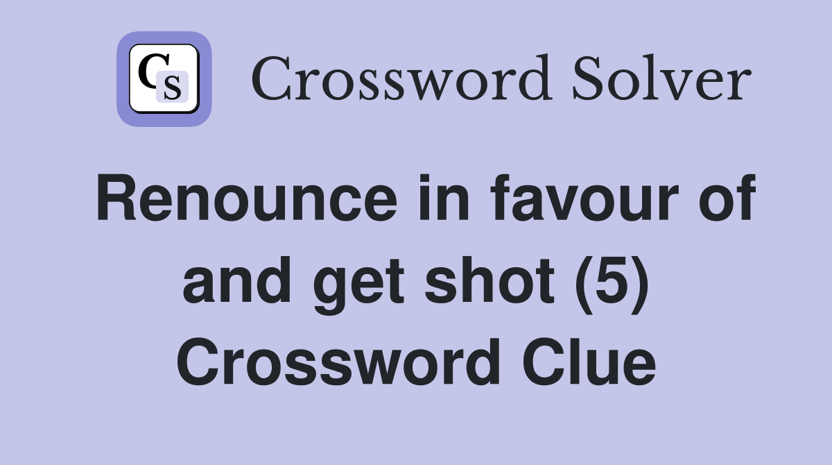 Renounce in favour of and get shot (5) Crossword Clue Answers