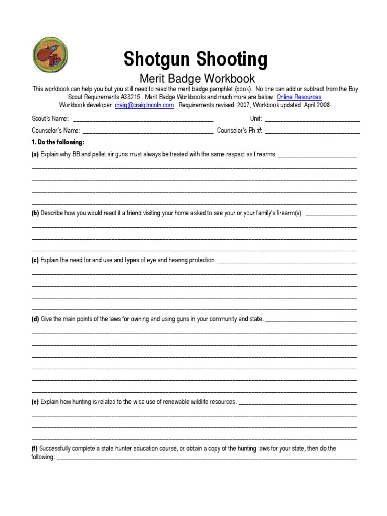 Free boy scout shotgun merit badge worksheet Download Free boy scout
